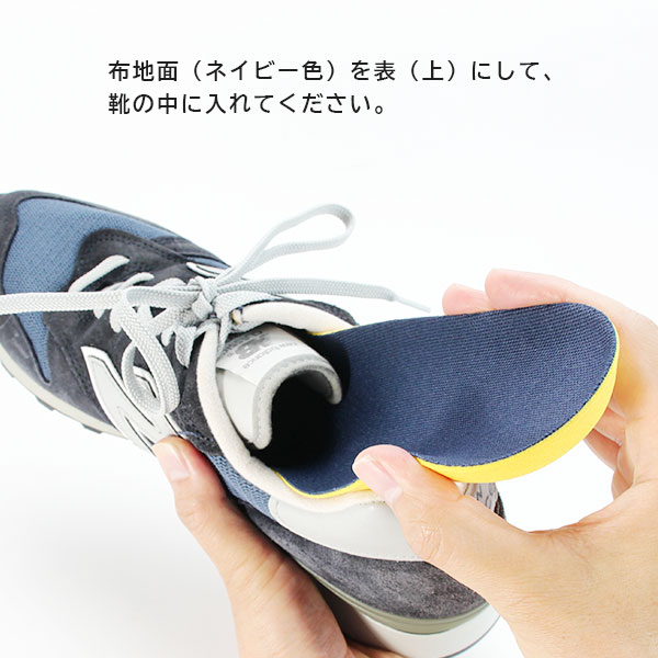 ○布地面(ネイビー色)を表(上)にして、靴の中に入れてください。